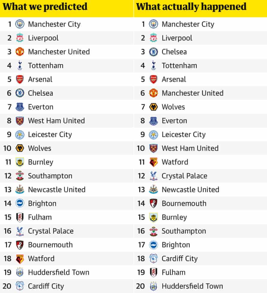 Premier League 2018 19 Review Our Predictions Versus Reality Premier League The Guardian